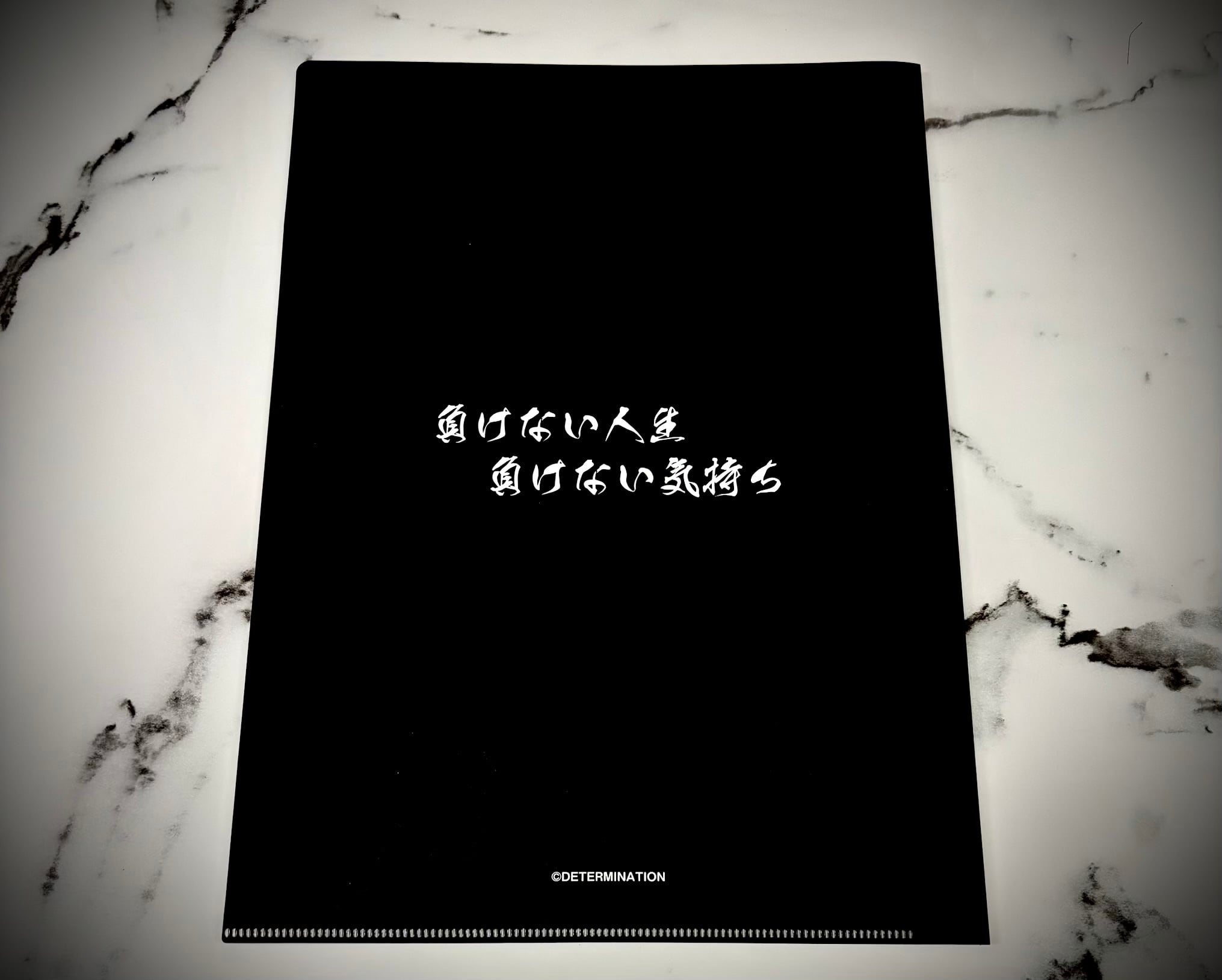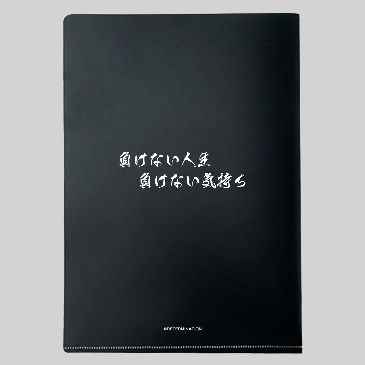 クリアファイル裏面には「負けない人生 負けない気持ち」の文字入り!