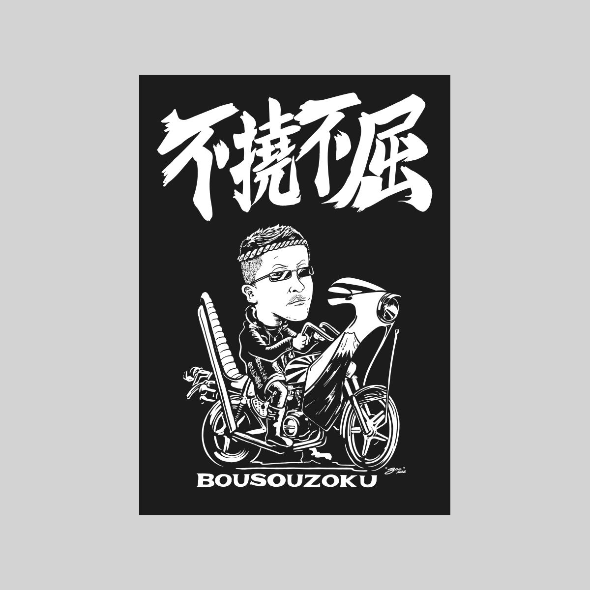 DETERMINATIONの信念「不撓不屈」を大胆に書いたデザイン。