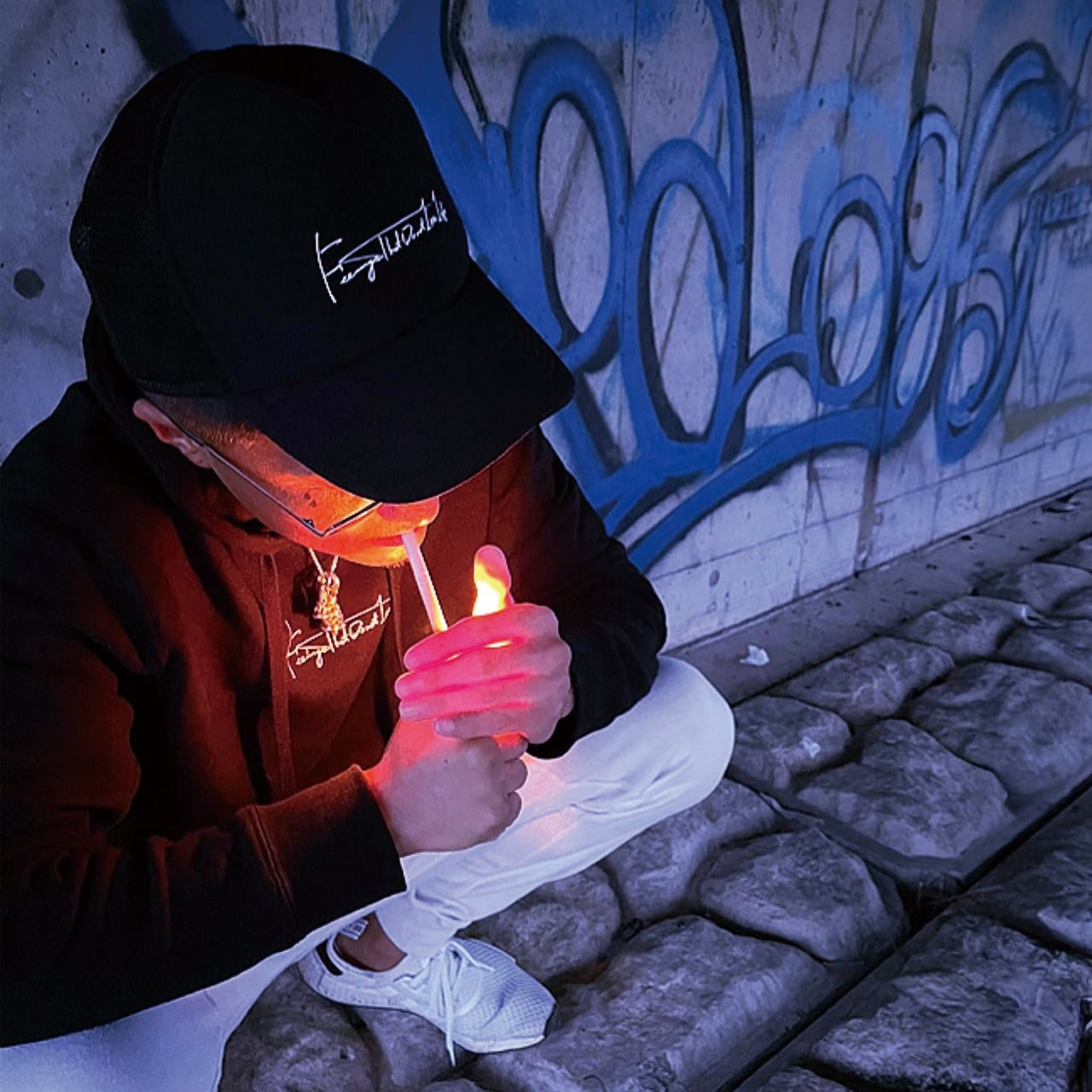 黒ベースに白字のシンプルな帽子!