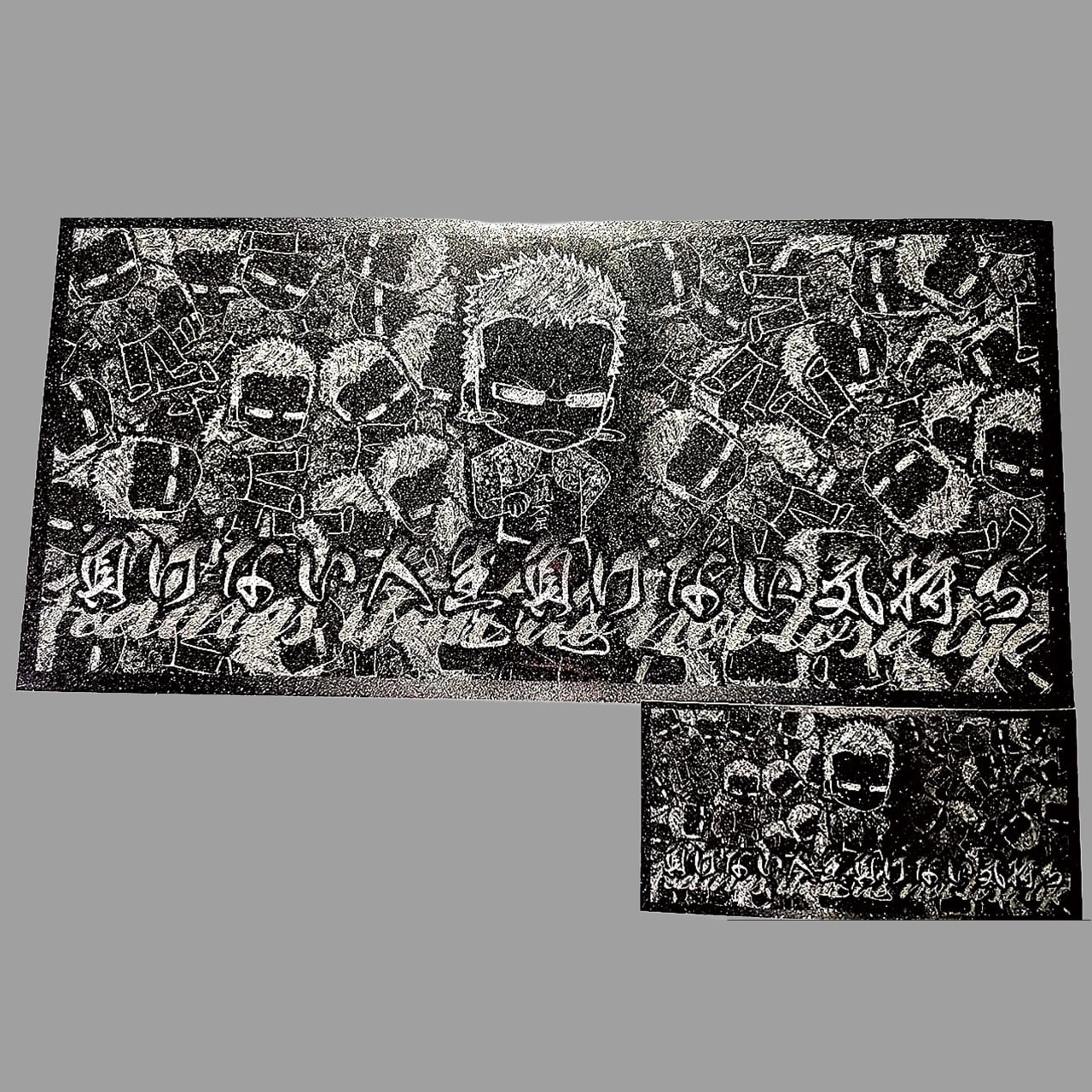 写真3枚目、大きいステッカーを1000円札の上に置いたサイズです。